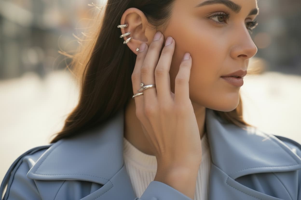 Silver chunky layers + mixed metals (silver z gold accents) rule – no more boring minimal, idź w statement pieces jak te! A icy blue outfits + silver? To combo, które zdominuje feedy – chłodny kontrast, który zamraża konkurencję! #FrostyFlex #IcyBlueSilver