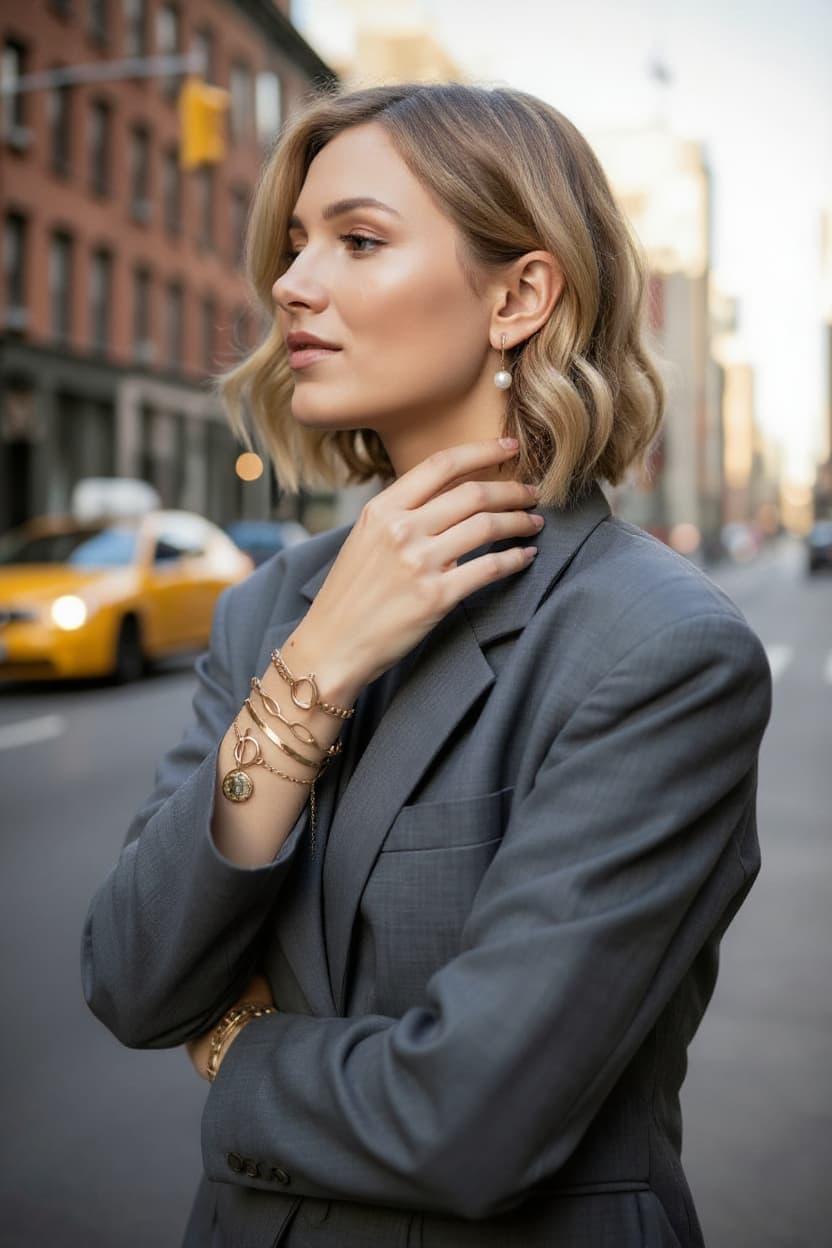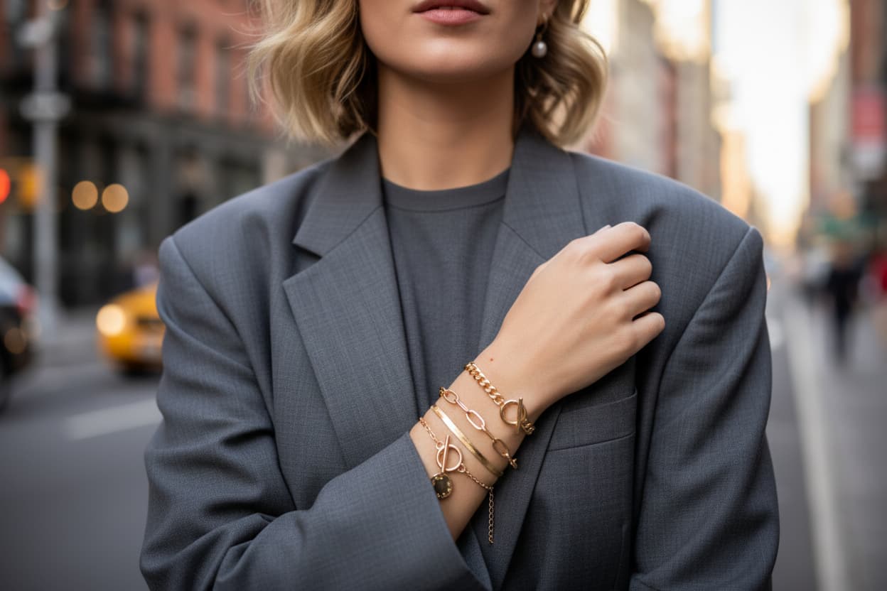 OT clasp ułatwia mix-and-match. Pro tip 1: Full stack wszystkich 4 na jednym nadgarstku – bold layering jak z viral reels. Pro tip 2: Solo snake chain do casual jeansów + crop topu. Pro tip 3: Mix z delikatnym naszyjnikiem i ear stackiem – complete vacation glam!