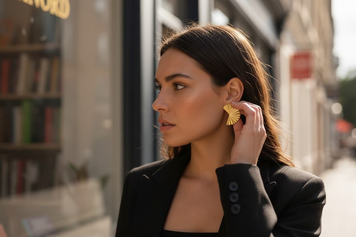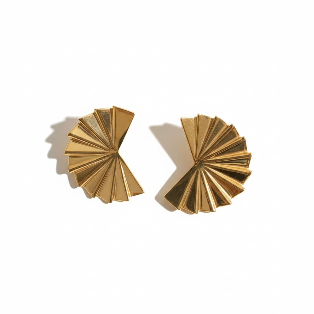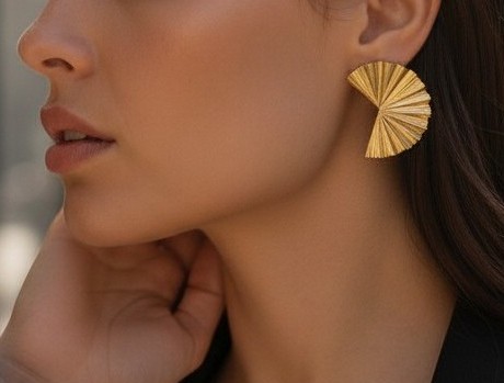 Złote syrenie wachlarze hipnotyzują w 2026 quiet luxury – charakterystyczne kolczyki w kolorze złotym (4 cm x 3 cm) dają subtelny, ale mega efektowny look, dodając luksusu z klasą!