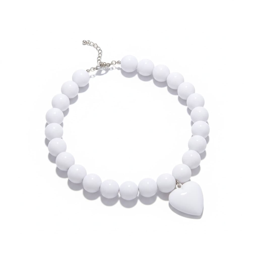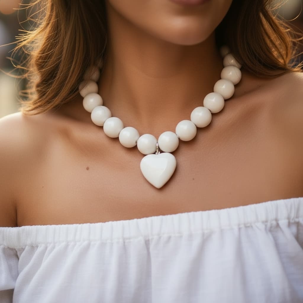 Białe korale z akrylowym serduszkiem – letnia miłość, która rozświetli każdy dzień.