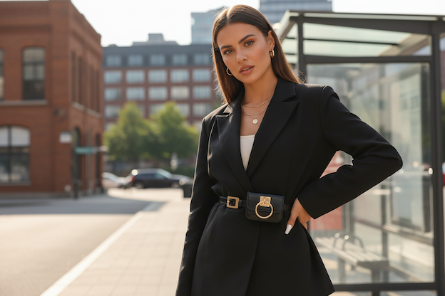 Brak pomysłu na stylizację? Klasyczny czarny żakiet + Twój Pasek Noir = instant glow-up! Odmieni humor, poczujesz się pewna siebie jak boss babe