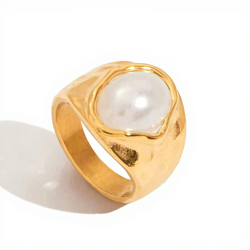 💍 Pierścionek – platerowana stal nierdzewna + perła (sztuczny kamień); (nie rdzewieje, odporna na codzienne zużycie)